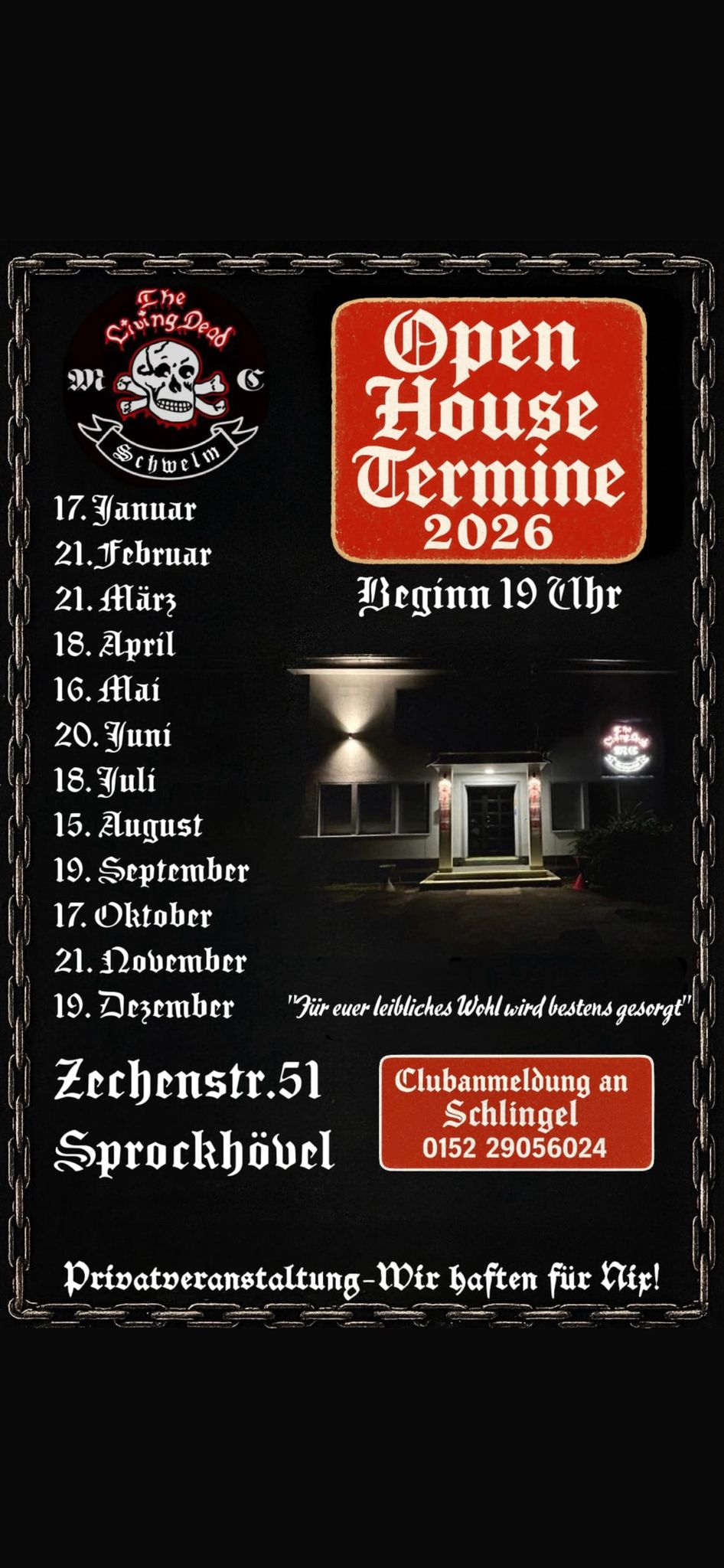 THE LIVING DEAD MC Zechenstr. 5145549 SPROCKHĂ–VEL livingdeadmcschwelm@web.de CLUBS NUR MIT VORANMELDUNG!