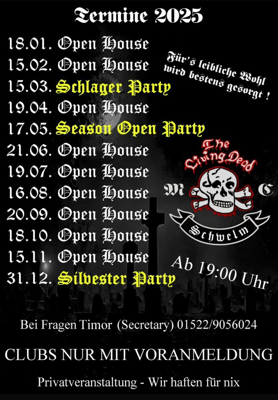 THE LIVING DEAD MC Zechenstr. 5145549 SPROCKHĂ–VEL livingdeadmcschwelm@web.de CLUBS NUR MIT VORANMELDUNG!